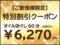旧【ご新規様限定!税込6,270円】オイルほぐし60分